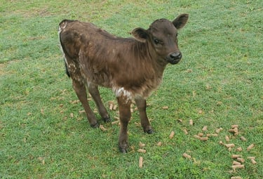 Ginger is the daughter of Red but has taken after Daisy as far as personality and has just had her first calf, Boaz.
