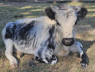 Dolly is Baby's first daughter and is half Longhorn. She is our first miniature Longhorn and will continue that line.